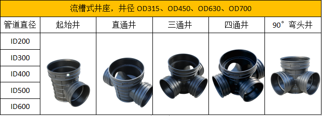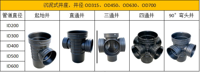 塑料檢查井——俗稱“塑料窨井”,由井座、井筒、井蓋和配件組成。分為沉泥井和流槽井。