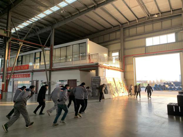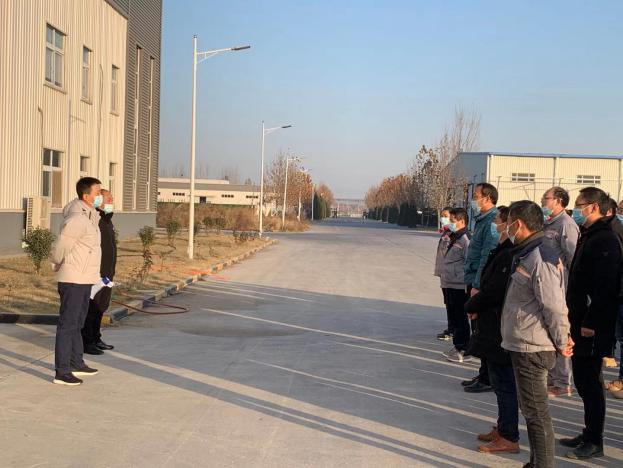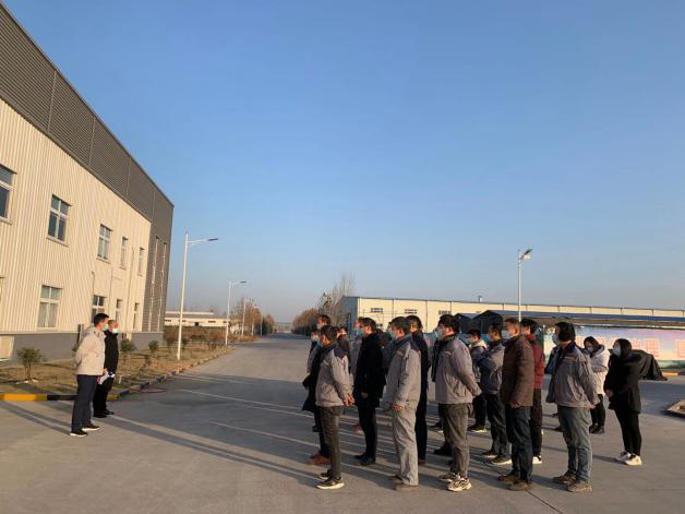 2020年12月24日上午8點10分,綜合管理部組織公司各部門負責人、生技部員工、倉儲部倉庫管理員、倉管員等其他人員在公司PO車間西門口集中列隊。