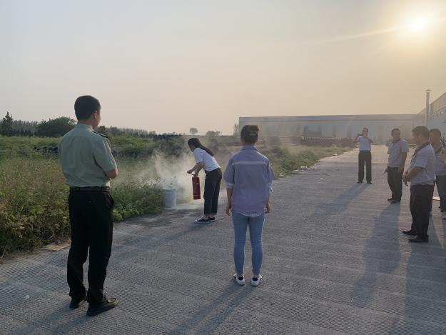 在廠區(qū)模擬火災現(xiàn)場,由安全員王志勇進行滅火演練注意事項宣貫及步驟講解,副總經(jīng)理張總下達演習指令。通過現(xiàn)場演練,消防警官指導大家如何正確使用滅火器,參加演練的各部門人員輪流實踐操作滅火器使用方法。